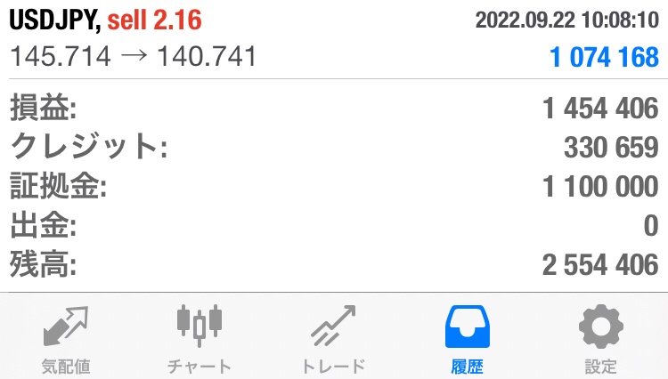 (2022/10/1)50万円運用スタートのお客様の場合〜2022/10/20現在の総利益約158万円獲得中です!!!